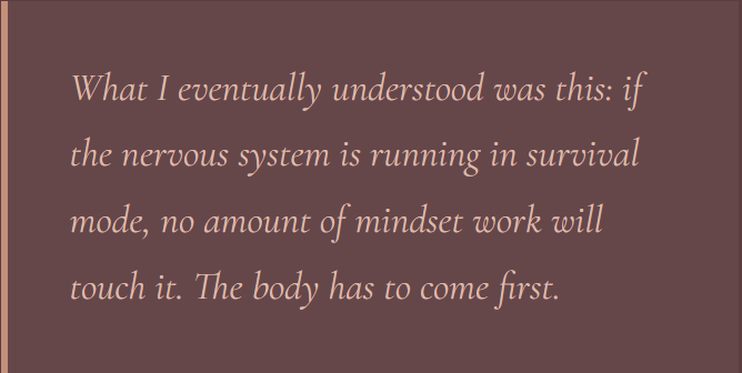 There's a reason the mindset work didn't work. It's not that it's wrong. It's that it's being done in the wrong order. When the nervous system is in survival mode, the thinking brain isn't running the show. The body is. And until you work with the body first, everything else is just surface level.
